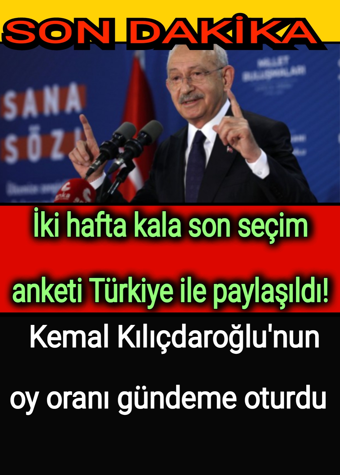 Muhalefet tarafından seçimi ilk turda kazanacağı söylenen Kemal Kılıçdaroğlu'nun ilk turda kaybeden taraf olacağı bildirildi. KEMAL KILIÇDAROĞLU: 42