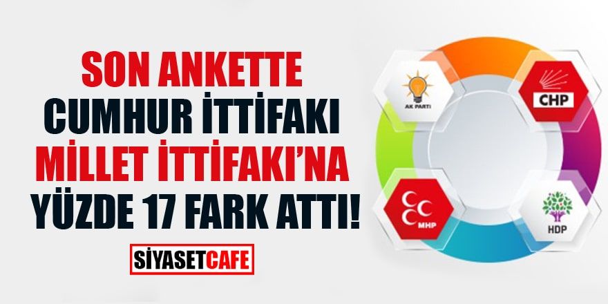 Yapılan ankette seçmene, partiler yerine "Hangi ittifak bloğuna oy verirsiniz?" sorusu soruldu. AK Parti ve MHP'den oluşan Cumhur İttifakı yüzde 51.4'e ulaşırken; CHP, İYİ Parti, Demokrat Parti ve Saadet Partisi'nden oluşan Millet İttifakı yüzde 34.2'de kalıyor. Aralarındaki fark 17.2 çıkıyor.