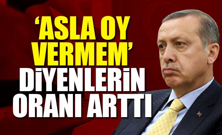 Gelecek cumhurbaşkanlığı seçiminde Cumhurbaşkanı Recep Tayyip Erdoğan'a oy vereceğini söyleyenler yüzde 39,6'da kaldı. Dikkat çeken gelişme ise tüzde 50,5 ile “asla oy vermeyeceğini”, yüzde 2 oy kullanmayacağını belirtti ve yüzde 7,9 “Oy verebilirim de vermeyebilirim de” dedi.