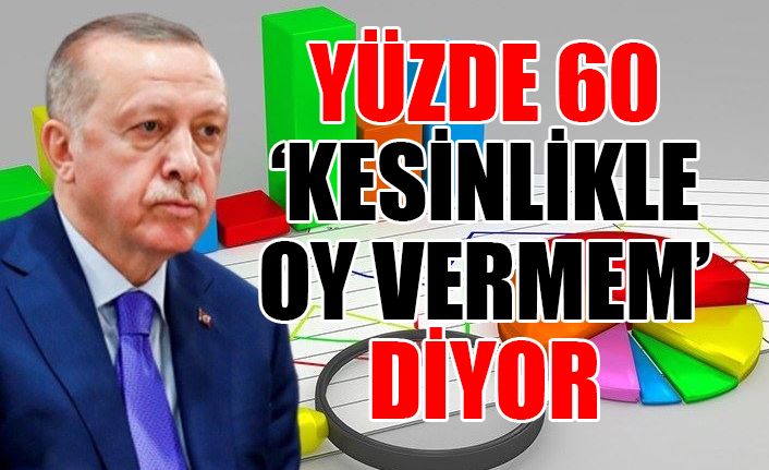 'Cumhurbaşkanlığı seçiminde aday olursa Erdoğan'a oy verir misiniz?' sorusuna yurttaşların yüzde 56.9'u 'asla oy vermem', yüzde 32.6'si 'kesinlikle oy veririm' ve yüzde 8.1'i ise 'Oy verebilirim de vermeyebilirim de' dedi.