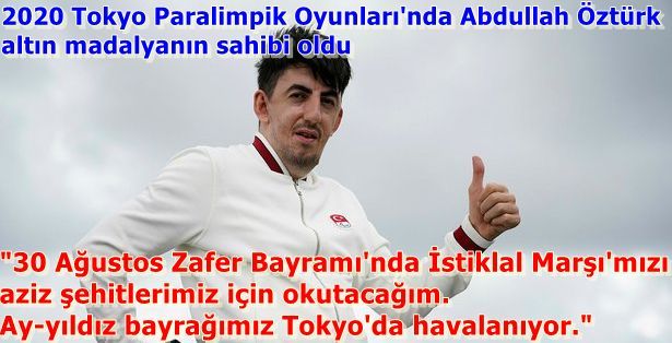 Abdullah Öztürk, 2016 Rio'daki unvanını korudu ve üst üste ikinci kez paralimpik altın madalyası kazanarak da adını tarihe yazdırdı. Bu başarıyı paralimpik oyunlarda daha önce halterde Nazmiye Muratlı 2012 ve 2016'da yakalamıştı. Takımlarda da Sınıf 45'te bronz madalyası olan Abdullah, paralimpik oyunlarda madalya sayısını 3'e çıkarmış oldu. 2020 Tokyo Paralimpik Oyunları'nda da Türkiye'nin ilk altın madalyasını da Abdullah Öztürk elde etti. Tokyo'da Büyükşehir Spor Salonu'nda gerçekleşen masa tenisi müsabakalarında Abdullah Öztürk, finalde 2012 Londra'da Sınıf 3'te altın madalya kazanan ve Sınıf 4'te dünya şampiyonluğu da bulunan Güney Koreli Kim'le karşılaştı. 2016 Rio'da altın madalya alan, aynı zamanda dünya ve Avrupa şampiyonu unvanı bulunan Abdullah Öztürk, ilk sette 95 geriye düşmesine rağmen skoru 99'da dengeye getirdi. Sonraki iki sayıyı alan Kim, seti 119 kazanarak maçta 10 öne geçti. İkinci sette çok iyi bir oyun ortaya koyan Abdullah, rahat geçen seti 116 alarak durumu 11 yaptı. Karşılıklı sayılarla başlayan üçüncü sette milli sporcu, 55'ten sonra oyuna ağırlığını koydu. Üst üste aldığı sayılarla farkı açtı ve seti 117 kazanarak maçta 21'lik üstünlük kurdu. Altın madalya için dördüncü sete çıkan Abdullah Öztürk, bu sete de iyi başladı. Setin ortasında 63'lük üstünlük kuran Abdullah karşısında toparlanan Kim, 87 öne geçti. Sette 1110 öne geçen ve altın madalya için servis kullanan Abdullah, sayıyı almayı başardı ve seti 1210 maçı da 31 kazanarak şampiyon oldu. Karşılaşmadan sonra büyük bir sevinç yaşayan Abdullah Öztürk, sırtına aldığı Türk bayrağıyla altın madalyanın gururunu yaşadı. Gençlik ve Spor Bakanı Mehmet Muharrem Kasapoğlu da Abdullah'ı yalnız bırakmadı ve müsabakayı salonda izledi. Abdullah Öztürk de altın madalya sevincini ilk olarak Bakan Kasapoğlu'na sarılarak yaşadı. "30 AĞUSTOS ZAFER BAYRAMI'NDA İSTİKLAL MARŞI'MIZI AZİZ ŞEHİTLERİMİZ İÇİM OKUTACAĞIM" Abdullah Öztürk, karşılaşmadan sonra TRT Spor'a açıklamalarda bulunarak, şunları kaydetti: "Şampiyon olmak istiyordum. Hocalarımızla çok iyi kamplar geçirdik. Çok büyük fedakarlıklar yaptık. Emeğimizin karşılığını altın madalyayla aldım. 30 Ağustos Zafer Bayramı'nda İstiklal Marşı'mızı aziz şehitlerimiz içim okutacağım. Ayyıldız bayrağımız Tokyo'da havalanıyor. Destekleyen herkesten Allah razı olsun. Sayın Bakanım maçımı izlemeye geldi, çok teşekkür ediyorum. Çok mutluyum."