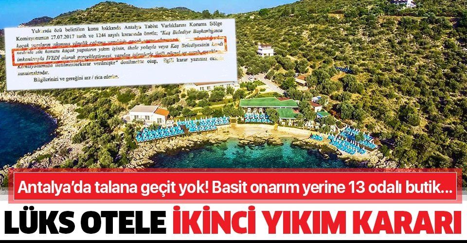 Şikayetler üzerine harekete geçen Çevre ve Şehircilik İl Müdürlüğü ve Antalya Tabiat Varlıklarını Koruma Bölge Komisyonu, butik otel hakkında ikinci kez yıkım kararı verdi. Komisyon tarafından 20 Ağustos 2020 tarihinde alınan karar, hem Kaş Belediyesi hem de Kaş Cumhuriyet Başsavcılığı'na ve diğer ilgili kurumlara gönderildi.