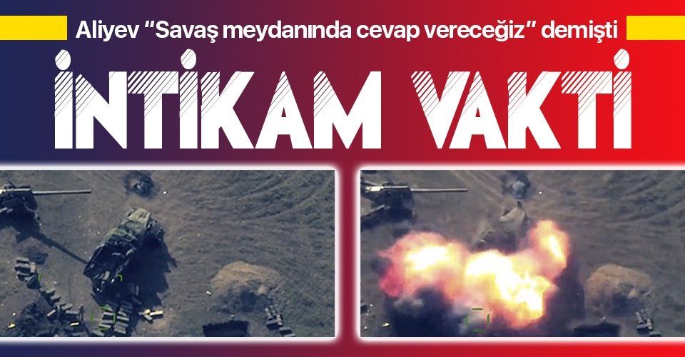 Görüntülerde, Azerbaycan ordusunun Ermenistan'a ait çok sayıda askeri teçhizatının imha edilme anı yer aldı.