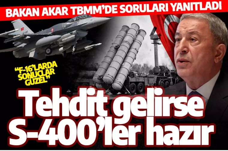 "S400 füze savunma sistemi yerinde, kullanılmaya hazır. Tehdit gelirse bunu kullanırız" diyen Bakan Akar, ayrıca, SADAT'la ilgili yöneltilen soruya da "Bizim SADAT’la hiçbir ilgimiz, ilişkimiz yok. Bizim dışımızda bir hadise" yanıtını verdi.