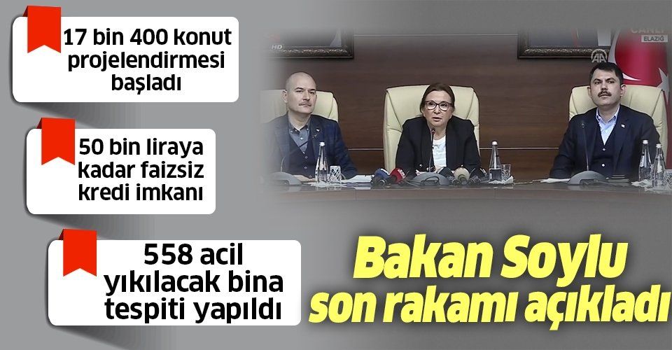 İçişleri Bakanı Süleyman Soylu, Ticaret Bakanı Ruhsar Pekcan ve Çevre ve Şehircilik Bakanı Murat Kurum 6.8 şiddetindeki depremle sarsılan Elazığ'da önemli açıklamalarda bulundu.
