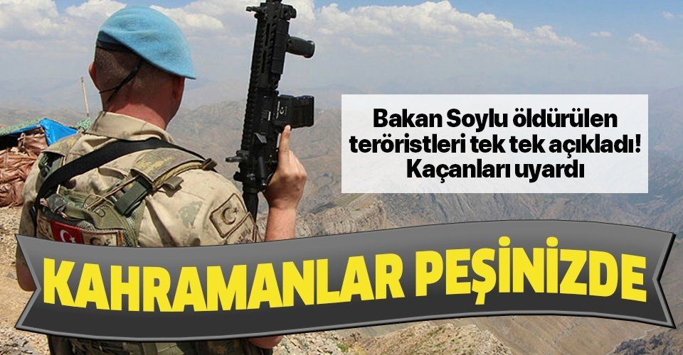"Kahramanlar devam ediyor... Bugün Lice'de biri turuncu listede 2 terörist, Bestler Dereler'de az önce 3... Yurt içinde 5 terörist daha azaldı. Kaçan beş terörist, şanslı olduğunuzu düşünmeyin... Kahramanlar peşinizde..."
