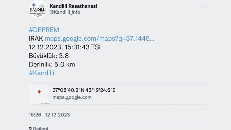 meydana gelen büyüklüğündeki depremi Kandilli Rasathanesi açıkladı!