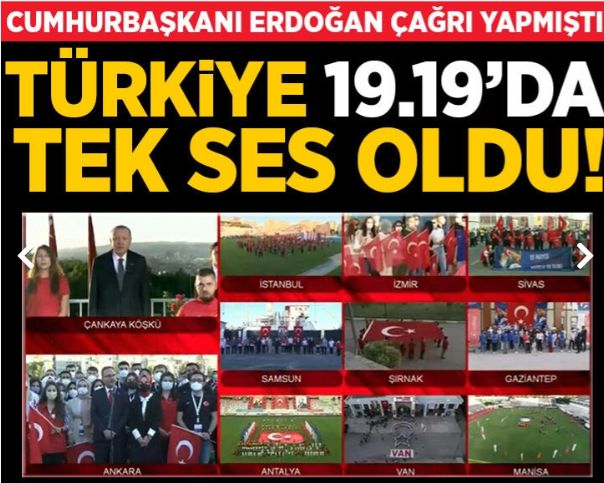 Cumhurbaşkanı Erdoğan'ın çağrısının ardından tüm Türkiye'de 19.19'da İstiklal Marşı okundu. Cumhurbaşkanı Erdoğan da gençlerle birlikte İstiklal Marşına eşlik etti.