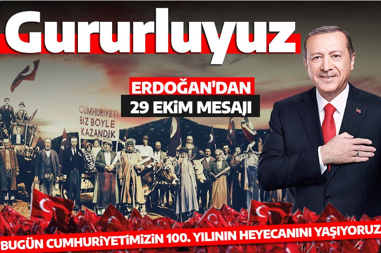"Bugün Cumhuriyetimizin 100’üncü yıl dönümüne ulaşmanın heyecanını ve gururunu yaşıyoruz. Ülkemizde ve dünyanın dört bir yanında yaşayan vatandaşlarımızın 29 Ekim Cumhuriyet Bayramı’nı canıgönülden tebrik ediyorum."