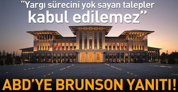 Kalın tarafından yapılan açıklamada, "Türkiye Cumhuriyeti bir hukuk devletidir. Rahip Brunson davası da hukuki bir davadır. Şahıs hakkında devam eden bir yargı süreci vardır. ABD'nin yargı sürecini yok sayarak bir takım taleplerde bulunması elbette kabul edilemez. ABD kendi ülkesinde yapamadığını bir başka ülkeden talep edemez." denildi.