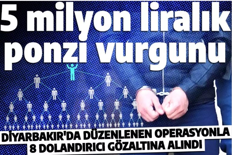 2 ay süren teknik takip ve dinleme sonucu Diyarbakır, İstanbul ve Antalya'da eş zamanlı düzenlenen "Limit Operasyonu"nda "Ponzi yöntemiyle" dolandırıcılık yaptığı öne sürülen 8 şüpheli yakalandı.