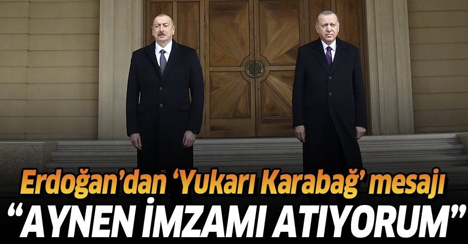 Cumhurbaşkanı Erdoğan Türkiye ve Azerbaycan arasındaki yakın işbirliklerine vurgu yaparak, "Geçtiğimiz yıl kardeşim Aliyev, 'Yukarı Karabağ Azerbaycan'dır!' diyerek görüşünü açıkça ifade etmişti. Aynı hususun altını Türkiye olarak, biz de imzamızı atarak burada ifade etmek istiyorum. 9 Şubat'ta düzenlenen Milli Meclis seçimlerinde aldığınız neticeyi de özellikle Azerbaycan'ımız için, özellikle hayırlara vesile olmasını Allah'tan diliyorum. Bu seçimlerin huzur ve sükunet içinde tamamlanmasından büyük bir mutluluk ve memnuniyet duyduk. Ve kıymetli kardeşim Sayın Aliyev'in önderliğinde gerçekleştirilmekte olan Reform Sürecini'de taktirle izliyor ve takip ediyoruz. Reform sürecini desteklemek amacıyla da her alanda tecrübelerimizi sizlerle paylaşmakta hazır olduğumuzu ifade etmek isterim. Tabii özellikle Tiflis Kars Demiryolu, TANAP Star Rafinesi gibi devasa ortak projelere birlikte imza attık. Şimdi bütün hedef 2019'da yaklaşık 4 buçuk milyar dolar olan ticaret hacmimizi, daha önce belirlediğimiz gibi 15 milyar dolara çıkarmak, bu konuda da kardeşimle mutabık kaldık. Ve bunun için bütün bakan arkadaşlarımız ellerinden gelen gayreti ortaya koymalı " ifadelerini kullandı.