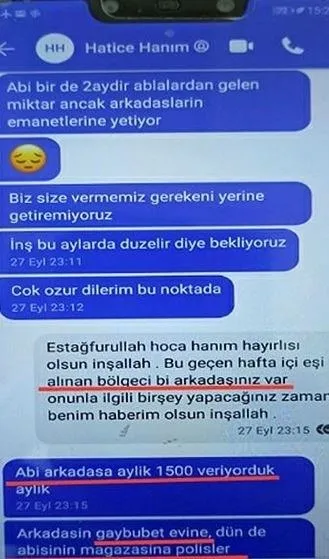 FETÖ kadın yapılanma imamı: "Abi iki aydır ablalardan gelen miktar ancak arkadaşların emanetlerine yetiyor. Biz size vermemiz gerekeni yerine getiremiyoruz. Çok özür dilerim bu noktada" S.K.: "Estağfirullah hoca hanım. Hayırlısı olsun inşallah. Hafta için eşi alınan bölgeci bir arkadaşımız var. Onunla ilgili bişey yapacağınızda bilgim olsun.