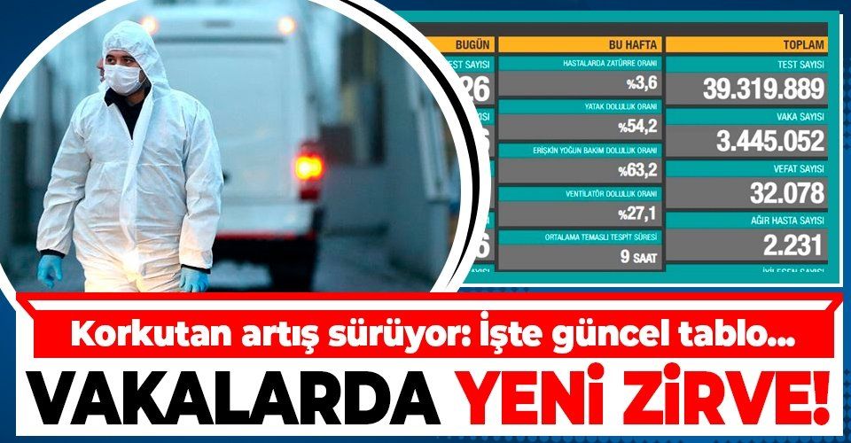 Toplam test sayısı 39 milyon 319 bin 889'a ulaştı, vaka sayısı 3 milyon 445 bin 52, vefat sayısı 32 bin 78, ağır hasta sayısı 2 bin 231 oldu.