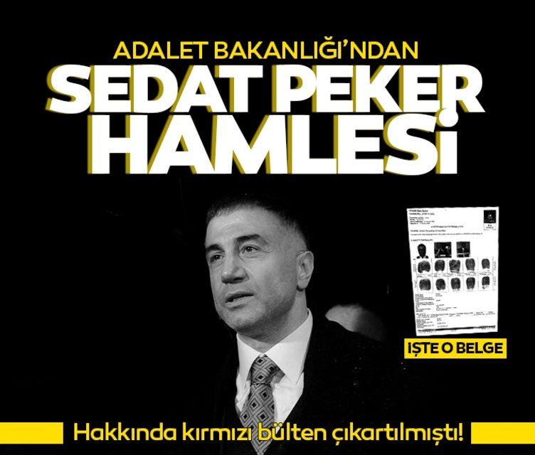 INTERPOL'un kararı, Adalet Bakanlığı, İstanbul Anadolu Cumhuriyet Başsavcılığı ve Bursa Cumhuriyet Başsavcılığı'na bildirildi. Adalet Bakanlığı, Birleşik Arap Emirlik'leri'nde bulunan Sedat Peker'in tutuklanıp Türkiye'ye iadesini istedi. SABAH'ın ulaştığı INTERPOL'un kırmızı bülten kararında, Peker'in 3 farklı fotoğrafı, kimlik bilgileri ve parmak izi yer aldı.