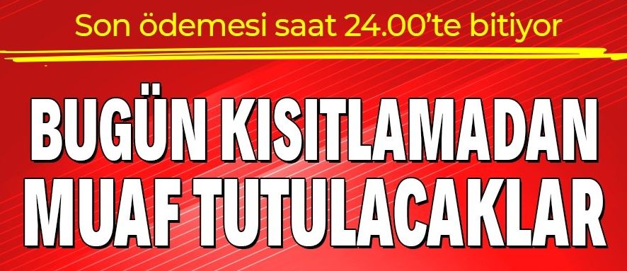 . İçişleri Bakanlığı'ndan yapılan açıklama şöyle; "Vergi ve diğer bazı borçların yapılandırılmasına ilişkin düzenlemeler içeren 7256 sayılı Kanun kapsamında yapılandırılan borçların ikinci taksitinin son ödeme süresi bugün saat 24.00'te sona erecektir. Bu nedenle yapılandırma borçlarının ikinci taksitini ödemek üzere vergi daireleri ile diğer kamu idarelerine gidecek vatandaşlar ile ödemelerin yapılması için açık bulundurulacak vergi dairelerinde ve kamu idarelerinde görevli personel, güzergah ve muafiyet sebebiyle sınırlı olacak şekilde ve gerekli belgeleri veya kurum kimliklerini ibraz etmek kaydıyla 31 Mart 2021 günü 21.00'de başlayacak sokağa çıkma kısıtlamasından gece saat 24.00'e kadar muaf tutulacak. Kamuoyuna saygıyla duyurulur"