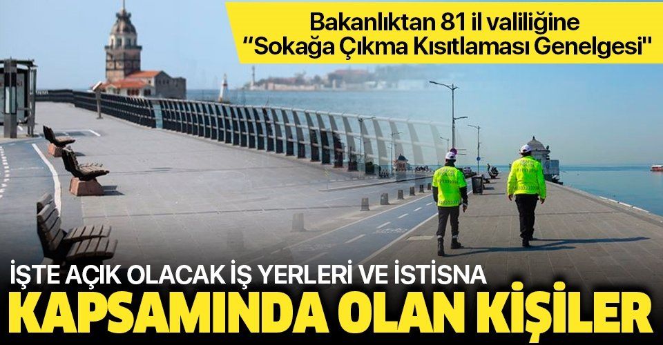 Açık olacak iş yeri, işletme ve kurumlarda yönetici, görevli veya çalışanlar, kamu düzeni ve güvenliğinin sağlanmasında görevli olanlar (özel güvenlik görevlileri dahil), acil çağrı merkezleri, Vefa Sosyal Destek Birimleri, Kızılay ve AFAD'da görev alanlar, cenaze defin işlemlerinde görevli olanlar (din görevlileri, hastane ve belediye görevlileri ve benzeri) ile birinci derece yakınlarının cenazelerine katılacak olanlar, elektrik, su, doğalgaz, telekomünikasyon ve benzerinin kesintiye uğramaması gereken iletim ve altyapı sistemlerinin sürdürülmesi ve arızalarının giderilmesinde görevli olanlar, ürün ve/veya malzemelerin nakliyesinde ya da lojistiğinde (kargo dahil), yurt içi ve yurt dışı taşımacılık, depolama ve ilgili faaliyetler kapsamında görevli olanlar, yaşlı bakımevi, huzurevi, rehabilitasyon merkezleri, çocuk evleri vb. sosyal koruma/bakım merkezleri çalışanları, otizm, ağır mental retardasyon, down sendromu gibi "özel gereksinimi" olanlar ile bunların veli/vasi veya refakatçileri, demirçelik, cam, ferrokrom ve benzeri sektörlerde faaliyet yürüten iş yerlerinin yüksek dereceli maden/cevher eritme fırınları ile soğuk hava depoları gibi zorunlu olarak çalıştırılması gereken bölümlerinde görevli olanlar istisna kapsamında bulunacak.