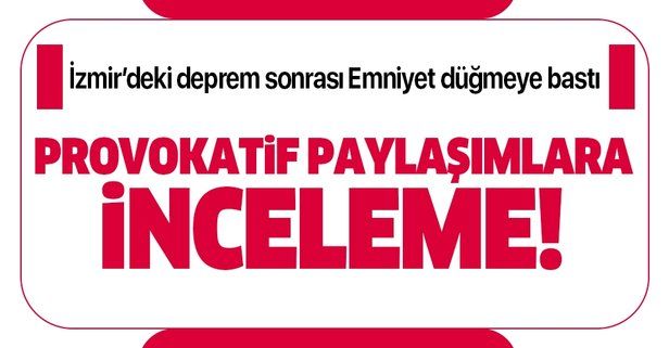 İzmir'in Seferihisar ilçesi açıklarında meydana gelen 6,6 büyüklüğündeki depremin ardından provokatif paylaşımda bulunan hesaplar hakkında inceleme başlattığı öğrenildi. Emniyet Genel Müdürlüğü Siber Suçlar Daire Başkanlığı'nın sosyal medyada provokatif paylaşımlarda bulunan hesaplar hakkında inceleme ve soruşturma başlatıldığı bildirildi. İşte Emniyet'in açıklaması Yürütülen sanal devriye faaliyetleri kapsamında; İzmir ve çevre illerde meydana gelen deprem üzerinden bölge halkına yönelik aşağılayıcı, tahkir ve tezyif edici paylaşımlarla halkın bir kesimini diğer bir kesimi aleyhine düşmanlığa ve/veya kin beslemeye alenen tahrik eden hesaplara ilişkin "tespit" çalışmaları ivedilikle başlatılmış, tespit edilen kişiler hakkında gerekli çalışmalar yapılarak adli mercilere intikal ettirilecektir. Konunun tarafımızca hassasiyetle takip edildiği hususu; Kamuoyuna saygıyla duyurulur.