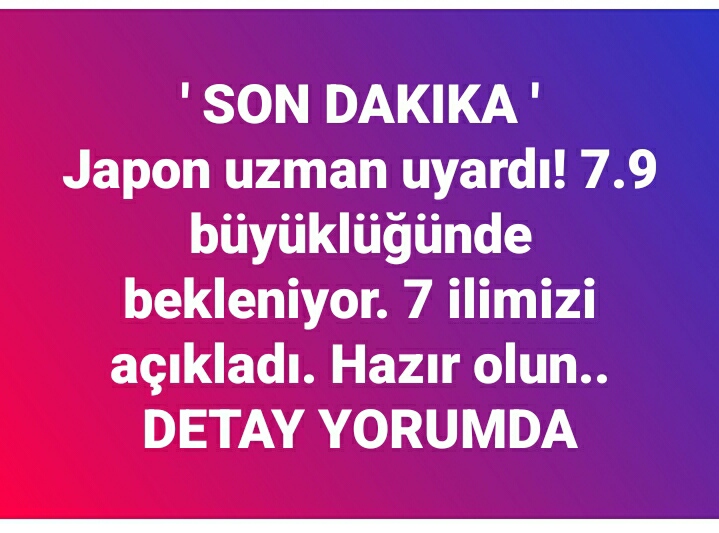 Bugün yaşanan depremler için açıklama yapıldı! Japon deprem uzmanı açıkladı! Türkiye depremine hazır olun. Japon deprem uzmanı Yoshinori Moriwaki, moralleri bozacak bir açıklama geldi.il beklenen büyük depremleri açıkladı…..HABER İÇİN G'öRS,eL,e DO,K,UNU,NU,Z,ZZ