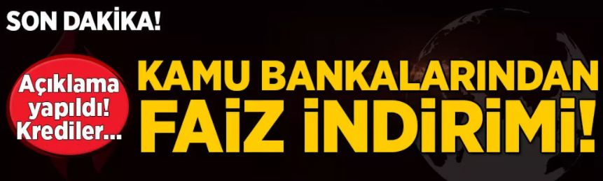Açıklama şu şekilde: Kamu Bankaları Ziraat Bankası, Vakıfbank ve Halkbank tarafından kredi faiz oranlarında ürün ve vade yapısına göre 200 baz puana kadar değişen oranlarda indirime gidildi.