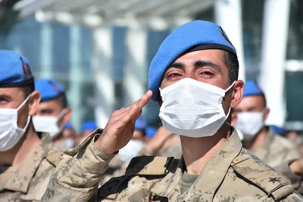Çiftçinin birliğinde olan ve komutanlarına veda eden bazı askerler gözyaşlarına hakim olamadı.