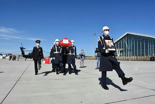 Şehidin Türk bayrağına sarılı naaşının katafalka konulduğu törende yeni tip koronavirüs (Kovid19) tedbirleri kapsamında sosyal mesafe kuralına uyuldu.
