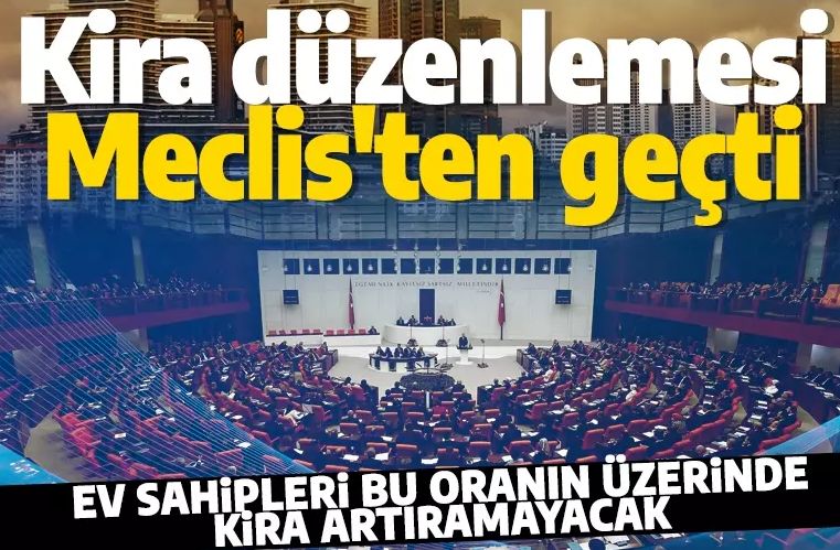 TBMM Genel Kurulu'nda Avukatlık Yasası görüşülürken AK Parti ve MHP'nin verdiği önerge ile konut kiralarına "yüzde 25 zam" sınırı getiren düzenleme kabul edildi.