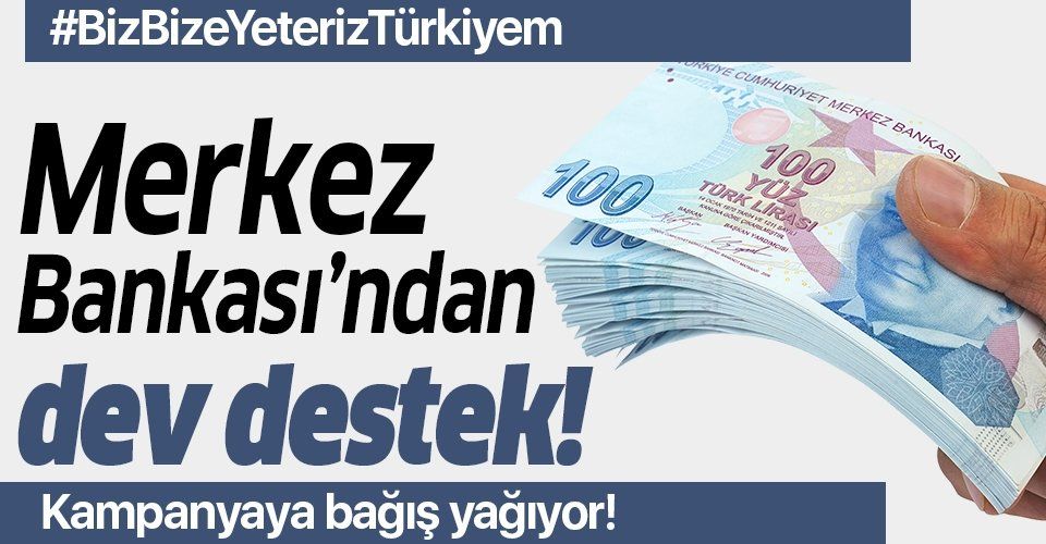 Merkez Bankasının resmi Twitter hesabından yapılan paylaşımda, "Koronavirüs salgını ile mücadele kapsamında Merkez Bankası olarak #BizBizeYeterizTürkiyem Milli Dayanışma Kampanyası'na 100 milyon lira ile katılıyoruz." ifadelerine yer verildi.