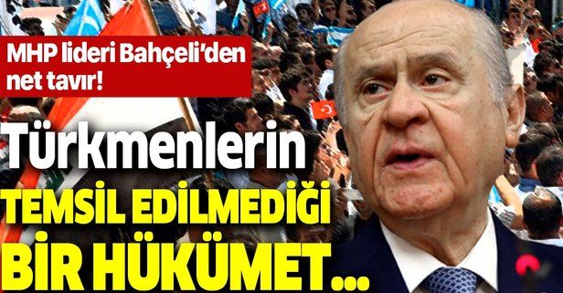 MHP Genel Başkanı Bahçeli, "Irak'ın dirlik ve istikrara kavuşabilmesi için katılımcı, güçlü ve her kesimi içine alan müessir bir siyasi iradeye ihtiyacı vardır. Türkmenlerin temsil edilmediği bir hükümet ahlaki ve siyasi tartışmalarla itibar kaybedecek, inandırıcılığı ve yaptırımı devamlı sorgulanacaktır." dedi.