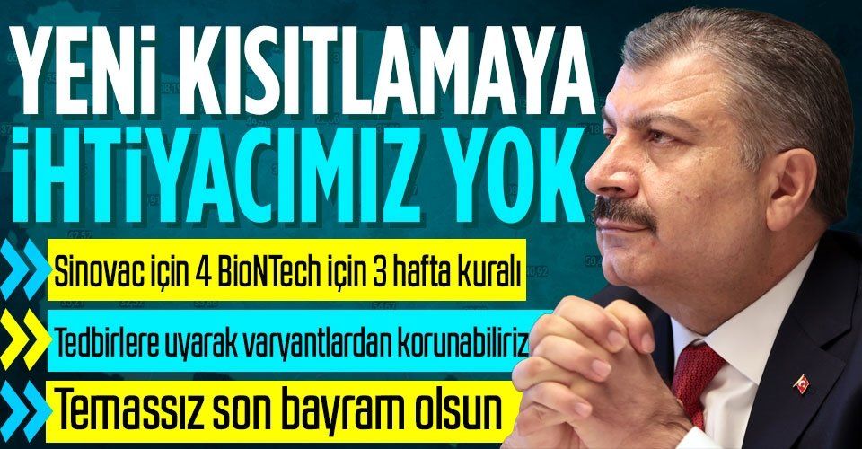 Koronavirüs Bilim Kurulu saat 16:30'da video konferans yöntemiyle toplandı. Sağlık Bakanı Fahrettin Koca, toplantının ardından YouTube üzerinden açıklama yapıyor. İşte Koca'nın o açıklamaları... Bakan Koca'nın açıklamalarından öne çıkanlar şu şekilde; Koronavirüs Bilim Kurulumuz bugün vaka sayılarının seyri, aşı programımız ve Bayram tedbirlerini görüşmek üzere toplandı. Bildiğiniz gibi hızlı bir aşı programı yürüterek bugün itibariyle 60 milyon dozdan fazla aşı uyguladık. Başından beri bayramdan önce tüm 18 yaş ve üzeri vatandaşlarımızın en az 1 doz aşısını uygulamak istediğimizi ve Bayrama böyle ulaşmayı hedef olarak belirledik. Normale dönmek için en önemli basamağın bu olduğunu belirttik. İllerimizde hedef nüfusun aşı olma oranlarını günlük ve aşı doz uygulamalarını anlık olarak sizlerle paylaşıyoruz. Haritada rengi maviye dönen illerimiz bizi heyecanlandırıyor ve salgından kurtuluşun umudunu ifade ediyor. Umuda giden yolda meşalelerimiz maviye dönen illerimiz. Fark edeceğiniz üzere son bir haftada vaka sayılarında bir yükselme eğilimi var. Eski ve acı tecrübelerimiz bunu kontrol etmenin çok maliyetli olduğunu gösteriyor. Maalesef vaka sayısı artan illerimizle aşılanma oranı arasında benzerlik var. Birkaç istisna dışında aşı olma oranı düşük olan illerimizde vaka sayıları bir önceki haftaya oranla birkaç kat yükseliyor. Önümüzde bir İngiltere örneği var. Salgın bitme noktasına gelmişken bir anda onbinlerce vaka ile karşılaştılar. Sevindirici olan artan vaka sayıları vefat sayılarını şimdilik artırmıyor. Buna rağmen bu bize ders çıkarmamız gerektiğini gösteren önemli bir örnek. Koronavirüs tabiatı gereği mutasyona uğruyor ve varyantları bulaşma hızını ya da hasta etme kabiliyetini artırabiliyor. Artan varyantlara karşı elimizde aşı silahının yanında bir de tedbirlere uyum gücü var. Tedbirlere uyarak varyantlardan da korunabiliriz. Önümüzdeki günler özlemle beklediğimiz bayramın hemen öncesi. Bayramda bir araya gelirken kesinlikle tedbirlerden taviz vermemeliyiz. Tedbirsizlik elimizdeki silahları etkisiz kılabilir. Tedbir güvencemizdir. Kapalı ve havalandırması sınırlı olan alanlarda kalabalıklara karışmamalı bayramı kendimize ve sevdiklerimize zarar veren hale getirmemeliyiz. Bu bayram tedbirlere uyar ve aşımızı olursak el öpüp birbirimize sarılmadan geçireceğimiz son bayram olacak. Son kez bu bayram birbirimizle temastan uzak duralım. AŞI ARASI KAÇ HAFTA OLDU? Sistemlerimizde aşı hakkı buna uygun olacak şekilde tanımlanmıştır. Günü gelmişse randevunuzu alarak aşı olmaya gidebilirsiniz. Hedefimiz bayrama güvenle girmek için bayrama kadar 1. ve 2. doz aşılarımızı olmaktır. Aşı programımızın başarısına rağmen vaka sayılarında artış eğilimi var. Bu salgının henüz bitmediğinin göstergesidir. Elbette yeniden kısıtlamalara ihtiyaç olacak bir gündemde değiliz. Ancak, tedbirlere uymaz ve aşımızı olmazsak telafisi güç günlerle karşılaşabiliriz. Güçlü bir normale dönüşün şartı aşı olarak toplum bağışıklığı sağlanana kadar tedbirlere uymaktır. Bu vesile ile şimdiden Kurban Bayramınızı tebrik ediyor, sağlık ve mutlulukla nicelerine sevdiklerinizle beraber ulaşmanızı diliyorum. Hepinizi saygı ve sevgiyle selamlıyorum.