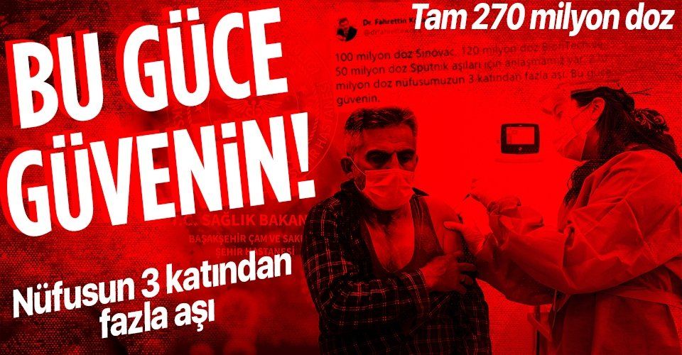 Bakan Koca, "100 milyon doz Sinovac, 120 milyon doz BionTech ve 50 milyon doz Sputnik aşıları için anlaşmamız var. 270 milyon doz nüfusumuzun 3 katından fazla aşı. Bu güce güvenin" ifadelerini kullandı.