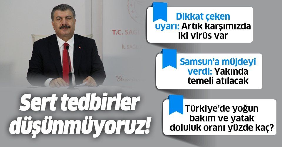 Bugüne kadar Türkiye olarak bir çözümsüzlükle karşı karşıya kalmadık. 6 ilimizde yeni aldığımız kararlarla mevcut imkanlarımızı takviye etmiş olmaktayız. Samsun'da yatak doluluk oranı yüzde 62, yoğun bakım yüzde 77, solunum cihazı doluluk oranı yüzde 40. Önümüzdeki aylarda olası viral enfeksiyon sebebiyle Samsun'a 74 yoğun bakım ilave ediyoruz.