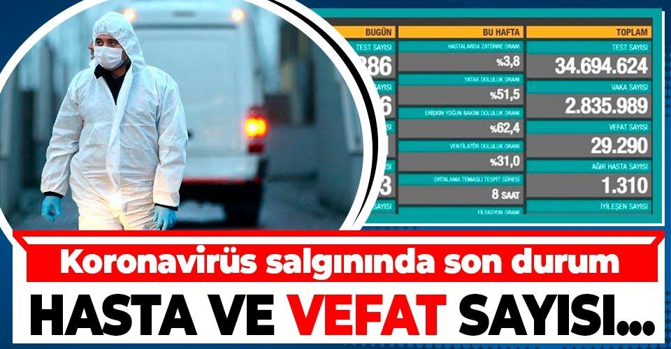 Türkiye Günlük Koronavirüs Tablosu, "covid19.saglik.gov.tr" adresinden paylaşıldı. Buna göre, son 24 saatte 146 bin 386 Kovid19 testi yapıldı, 14 bin 46 kişinin Kovid19 testi pozitif çıktı, 63 kişi yaşamını yitirdi, hasta sayısı 821 oldu. Son 24 saatte 9 bin 231 kişinin Kovid19 tedavisi ya da karantinasının sona ermesiyle iyileşen sayısı 2 milyon 659 bin 93'e yükseldi. Test sayısı 34 milyon 694 bin 624'e ulaştı. Vaka sayısı 2 milyon 835 bin 989, vefat sayısı 29 bin 290, ağır hasta sayısı 1310 oldu. Haftalık verilere göre, bu hafta hastalarda zatürre oranı yüzde 3,8, yatak doluluk oranı yüzde 51,5, erişkin yoğun bakım doluluk oranı yüzde 62,4, ventilatör doluluk oranı yüzde 31, ortalama temaslı tespit süresi 8 saat, filyasyon oranı yüzde 99,9 olarak kayda geçti. 10 MART KORONAVİRÜS TABLOSU 9 MART KORONAVİRÜS TABLOSU