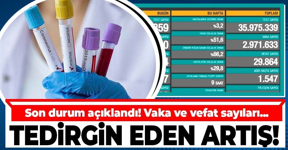 Türkiye Günlük Koronavirüs Tablosu, "covid19.saglik.gov.tr" adresinden paylaşıldı. Buna göre, son 24 saatte 187 bin 859 Kovid19 testi yapıldı, 21 bin 30 kişinin Kovid19 testi pozitif çıktı, 87 kişi yaşamını yitirdi, hasta sayısı 934 oldu. Test sayısı 35 milyon 975 bin 339'a ulaştı. Vaka sayısı 2 milyon 971 bin 633, vefat sayısı 29 bin 864, ağır hasta sayısı 1547 oldu. Haftalık verilere göre, bu hafta hastalarda zatürre oranı yüzde 3,2, yatak doluluk oranı yüzde 51,6, erişkin yoğun bakım doluluk oranı yüzde 66,2, ventilatör doluluk oranı yüzde 29,8, ortalama temaslı tespit süresi 9 saat, filyasyon oranı yüzde 99,9 olarak kayda geçti. 18 MART KORONAVİRÜS TABLOSU