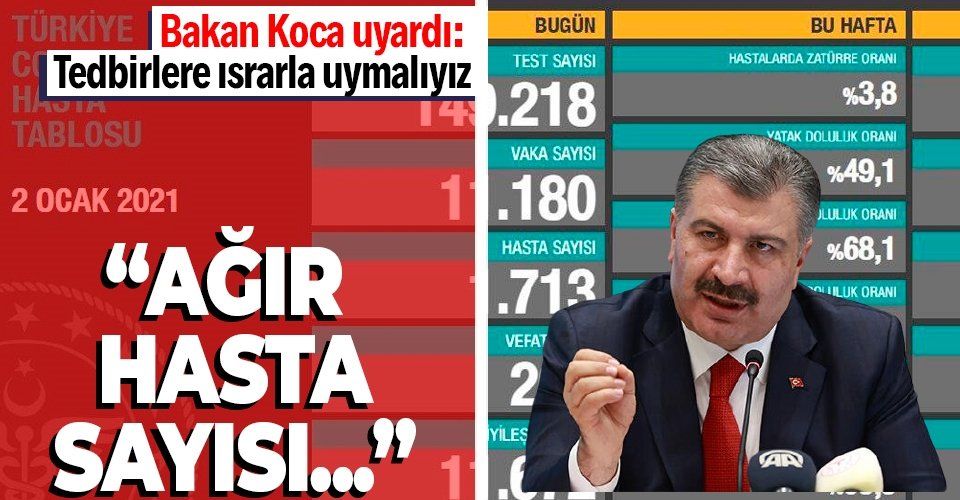 Sağlık Bakanı Fahrettin Koca, "Bugün tespit edilen 1.713 yeni hastamız var. Ağır hasta sayımızdaki düşüş devam ediyor. Kayıplarımızın daha da azalması en büyük beklentimiz. Aşılama programından başarıyla netice alana kadar tedbirlere ısrarla uymalıyız. Birlikte hareket edersek güçlüyüz" açıklamasında bulundu.