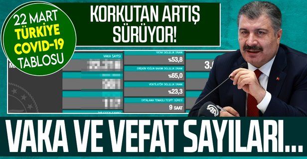 Sağlık Bakanlığı 22 Mart 2021 koronavirüs vaka, hasta ve vefat sayılarını içeren güncel Kovid19 tablosunu paylaştı. Türkiye'de son 24 saatte 201 bin 215 Kovid19 testi yapıldı, 22 bin 216 kişinin testi pozitif çıktı, 117 kişi hayatını kaybetti. 21 MART KORONAVİRÜS TABLOSU