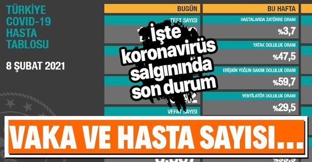 Türkiye'de son 24 saatte 139 bin 378 Kovid19 testi yapıldı, 8 bin 103 kişinin testi pozitif çıktı, 103 kişi hayatını kaybetti. 7 ŞUBAT KORONAVİRÜS TABLOSU
