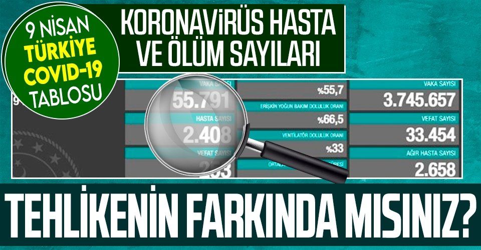 Son dakika haberi... Sağlık Bakanlığı 9 Nisan 2021 koronavirüs vaka ve vefat sayılarının yer aldığı son Kovid19 tablosunu paylaştı. Tabloya göre Türkiye'de son 24 saatte 305 bin 103 Kovid19 testi yapıldı, 55 bin 791 kişinin testi pozitif çıktı, 253 kişi yaşamını yitirdi, hasta sayısı 2 bin 408 oldu. Son 24 saatte 35 bin 786 kişinin Kovid19 tedavisi ya da karantinasının sona ermesiyle iyileşen sayısı 3 milyon 268 bin 678'e yükseldi. Toplam test sayısı 40 milyon 994 bin 845'e ulaştı, vaka sayısı 3 milyon 745 bin 657, vefat sayısı 33 bin 454, ağır hasta sayısı 2 bin 658 oldu. Haftalık verilere göre, bu hafta hastalarda zatürre oranı yüzde 3,1, yatak doluluk oranı yüzde 55,7, erişkin yoğun bakım doluluk oranı yüzde 66,5, ventilatör doluluk oranı yüzde 33, ortalama temaslı tespit süresi 9 saat, filyasyon oranı yüzde 99,9 olarak kayda geçti. 8 NİSAN KORONAVİRÜS TABLOSU 7 NİSAN KORONAVİRÜS TABLOSU