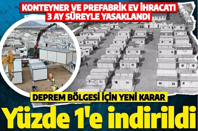 Bu kapsmda Ticaret Bakanlığı'ndan kritik bir adım geldi. Bakanlık, depremler nedeniyle ilk etapta ortaya çıkan geçici barınma ihtiyacının acilen giderilmesi için konteyner ev ve prefabrik yapı ihracatının 3 ay yasaklandığını duyurdu.