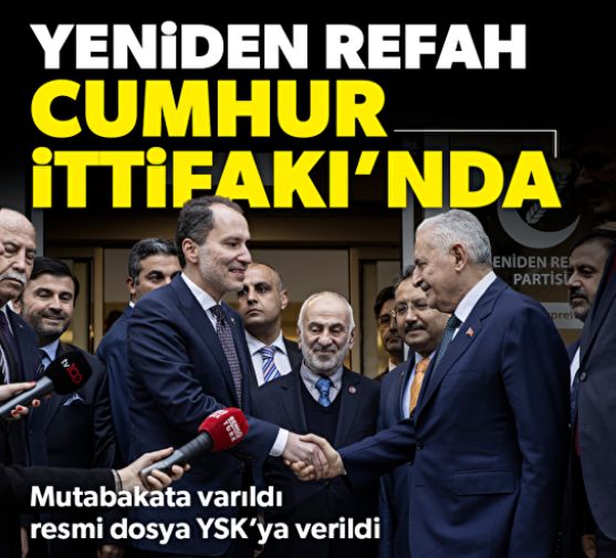 AK Parti, MHP ve BBP'den oluşan Cumhur İttifakı genişledi. Rahmetli Necmettin Erbakan'ın oğlu Fatih Erbakan'ın Genel Başkanı olduğu Yeniden Refah Partisi, son dakikada Cumhur İttifakı'na katılma kararı aldı.