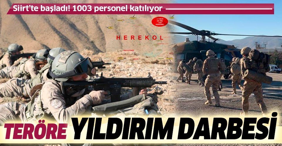 İçişleri Bakanlığı, Siirt'te 1003 personelin katılımıya Yıldırım11 Herekol Operasyonu başlatıldığını bildirdi. İçişleri Bakanlığından yapılan açıklamada, bölücü terör örgütünü tamamen ülke gündeminden çıkarmak ve bölgede barındığı değerlendirilen teröristleri etkisiz hale getirmek maksadıyla Siirt İl Jandarma Komutanlığınca "Yıldırım11 HerekoI" operasyonu başlatıldığı kaydedildi. Operasyonda Siirt İl Jandarma Komutanlığı'nda görevli, Jandarma Komando, Jandarma Özel Harekat (JÖH), Polis Özel Harekat (PÖH) ve Güvenlik Korucularından oluşan 56 operasyonel timde 1003 personelin görev aldığı belirtildi. Yurt içinde terörün tamamen ortadan kaldırılmasına yönelik 13 Temmuz 2020 tarihinde başlatılan Yıldırım (12345678910) operasyonları kapsamında bugüne kadar toplam 54 teröristin etkisiz hale getirildiği kaydedilen açıklamada, 24 işbirlikçinin yakalandığı, 112 mağara, sığınak ve deponun imha edildiği, çok sayıda silahmühimmat, gıda ve yaşam malzemesinin ele geçirildiği bildirildi. Açıklamada, Yıldırım operasyonlarının halkın desteği ile inançlı ve kararlı bir şekilde başarı ile devam ettiği kaydedildi.