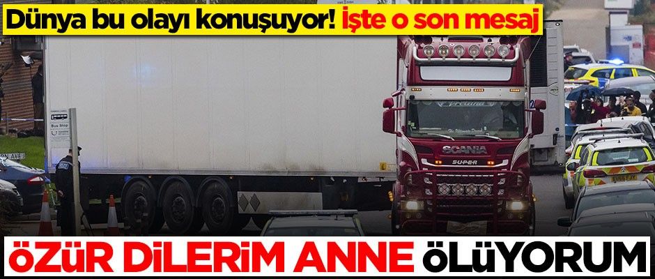 İngiltere'de ortaya çıkan konteyner faciasında şoke eden gelişmeler yaşanıyor. Konteynerde ölü halde bulunan 39 kişi arasında olduğu tahmin edilen bir kadının son mesajları ortaya çıktı. 26 yaşındaki Vietnamlı kadın, son mesajında "Yurt dışına çıkışım başarısız oldu. Anne, seni çok seviyorum. Ölüyorum, çünkü nefes alamıyorum. Anne, özür dilerim" ifadelerini kullandı.
