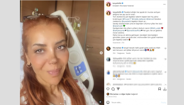 Özel bir hastanede tedavisi başlayan Tanyeli bugün hasta yatağından çektiği videoları Instagram hesabından paylaştı.