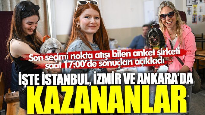 Son seçimleri bilen BETİMAR Araştırma Şirketi sandıklar kapanır kapanmaz resmi hesaplarından saat 17:00’de İstanbul, İzmir ve Ankara ile ilgili sonuçları paylaştı. İstanbul’u İmamoğlu ve Ankara’yı Yavaş büyük farkla kazanırken İzmir’i ise Cemil Tugay’ın az farkla kazandığı görüldü.