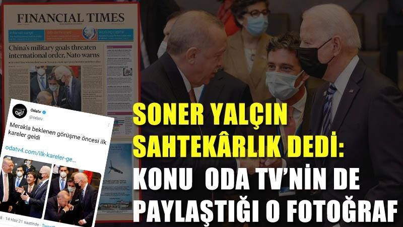Sözcü gazetesi yazarı Soner Yalçın bugünkü yazısında Financial Times’in kapak yaptığı ErdoğanBiden fotoğrafını yazdı. Yalçın bu fotoğrafın servis edilmesini ‘sahtekârlık’ olarak nitelendirdi. ODA TV de aynı fotoğrafı ‘Merakla beklenen görüşme öncesi ilk kareler’ ifadesiyle paylaşmıştı.