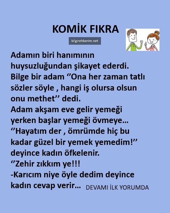 Adam akşam eve gelir yemeği yerken başlar yemeği övmeye…