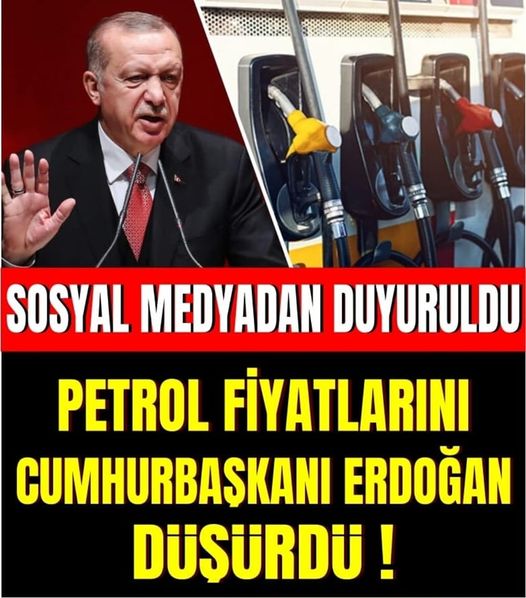 Petrol fiyatlarındaki düşüşün AKP'li Cumhurbaşkanı Recep Tayyip Erdoğan'ın gerçekleştirildiği iddia edildi.Haberin devamını okumak için fotoğrafa t’klayınız..