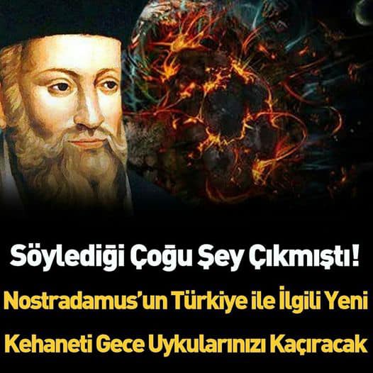 Fransız kahin Nostradamus, dünyamızın ne zaman ve nasıl yok olacağına dair toplamda 6338 kehanet yazmıştı. Bugüne kadar bu kehanetlerin neredeyse %70’i gerçekleşti. Adolf Hitler ‘in yükselişi, II. Dünya Savaşı, Fransız Devrimi, Atom Bombası gibi öngörülerde bulunduğu söylenmişti. Pandeminin bile kehanetleri arasında yer aldığı iddia edilen Nostradamus’un 2023 yılına ait kehanetleri ortaya çıktı. Türkiye ile ilgili kehanetleri uykularınızı kaçıracak..Ayrıntılar diğer sayfada haberimiz detayındadır..HABERİN DEVAMINI OKUMAK İÇİN FOTOĞRAF ÜZERİNE T’IKLAYINIZ..