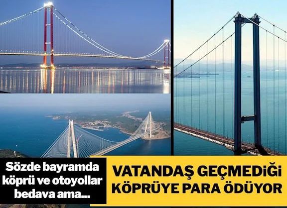 Kurban Bayramı öncesi Ulaştırma Bakanlığı, karayolları ve köprülerden geçişlerin bedava olduğunu açıkladı. Ancak Yap İşlet Devret (YİD) modeliyle yapılan köprü ve otoyollar bu kapsamın dışında. Bunun yanı sıra devlet faturayı yine halka kesiyor.