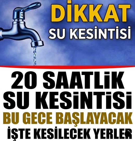 Sular Durdu! 24 Saatlik Su Kesintisi Başlıyor: Sürahinizi, Leğeninizi Hazırlayın!.Musluklar kapanıyor, tencereler su doluyor, pet şişeler kapış kapış! Şehirler genelinde 24 saat sürecek dev su kesintisi başlıyor ve vatandaşlar adeta “susuzluğa hazırlık moduna” geçti.Yetkililer, su kesintisinin altyapı yenileme çalışmaları nedeniyle yapılacağını duyurdu.Peki hangi illerde su kesintisi yaşanacak.